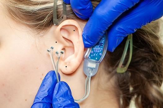 No safety data exists in adolescents with IBS treated longer than 4 weeks. Reported side-effects were similar between groups. There were no serious adverse events reported with active treatment. Overall, 10/104 (9.6%) of patients reported side-effects which included mild ear discomfort (n=6; three in the active stimulation group, three in the sham group), adhesive allergy (n=3; one in the IB-Stim group, two in the sham group), and syncope due to needle phobia (n=1; in the sham group).